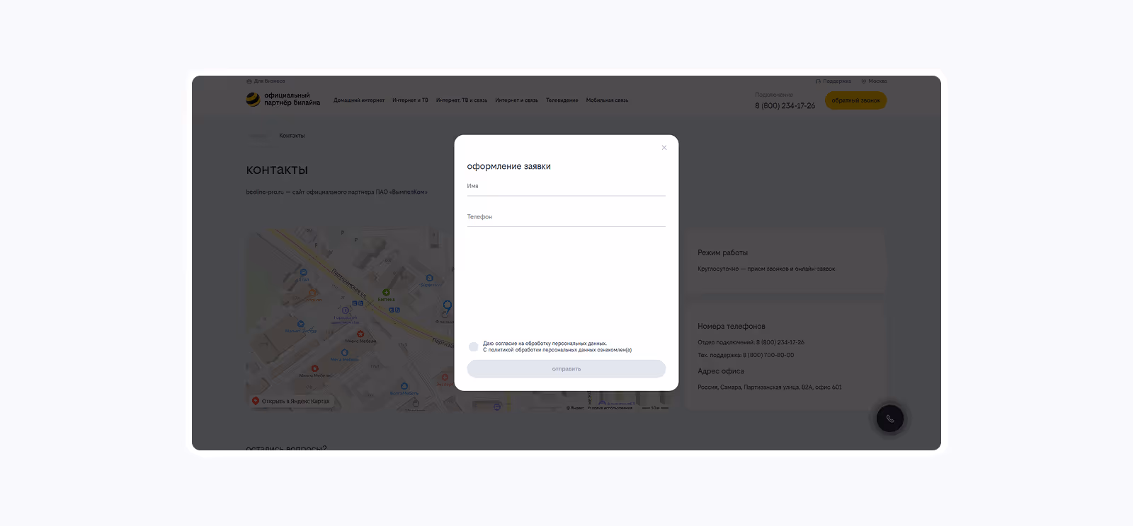 Главная страница Билайна. Попросили сделать максимально похоже на них